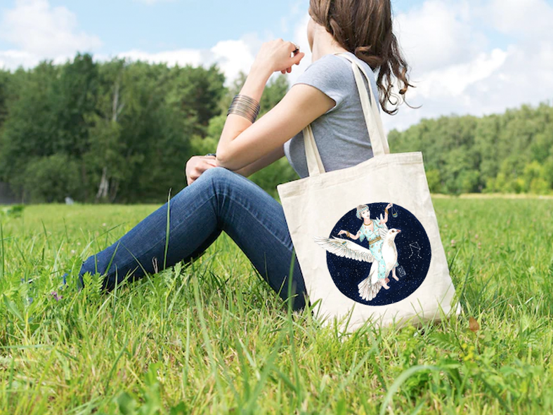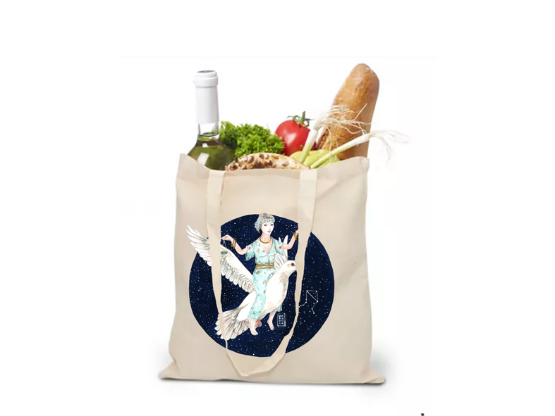 La bolsa de algodón modelo libra forma parte de la serie “Astrología”.  Libra es un signo de aire siempre en busca el sentido del equilibrio y la justicia. Es sociable, diplomático y elegante.