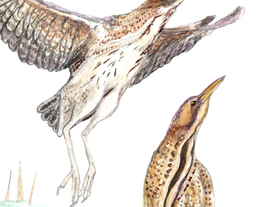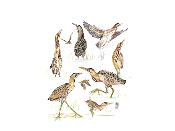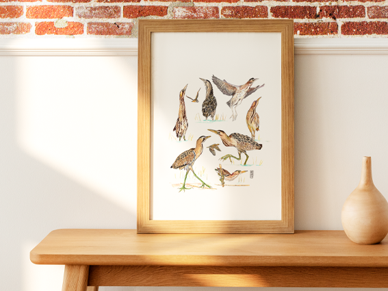 La lámina Avetoro es una reproducción del dibujo original, creado en acuarela, lápices y grafito.